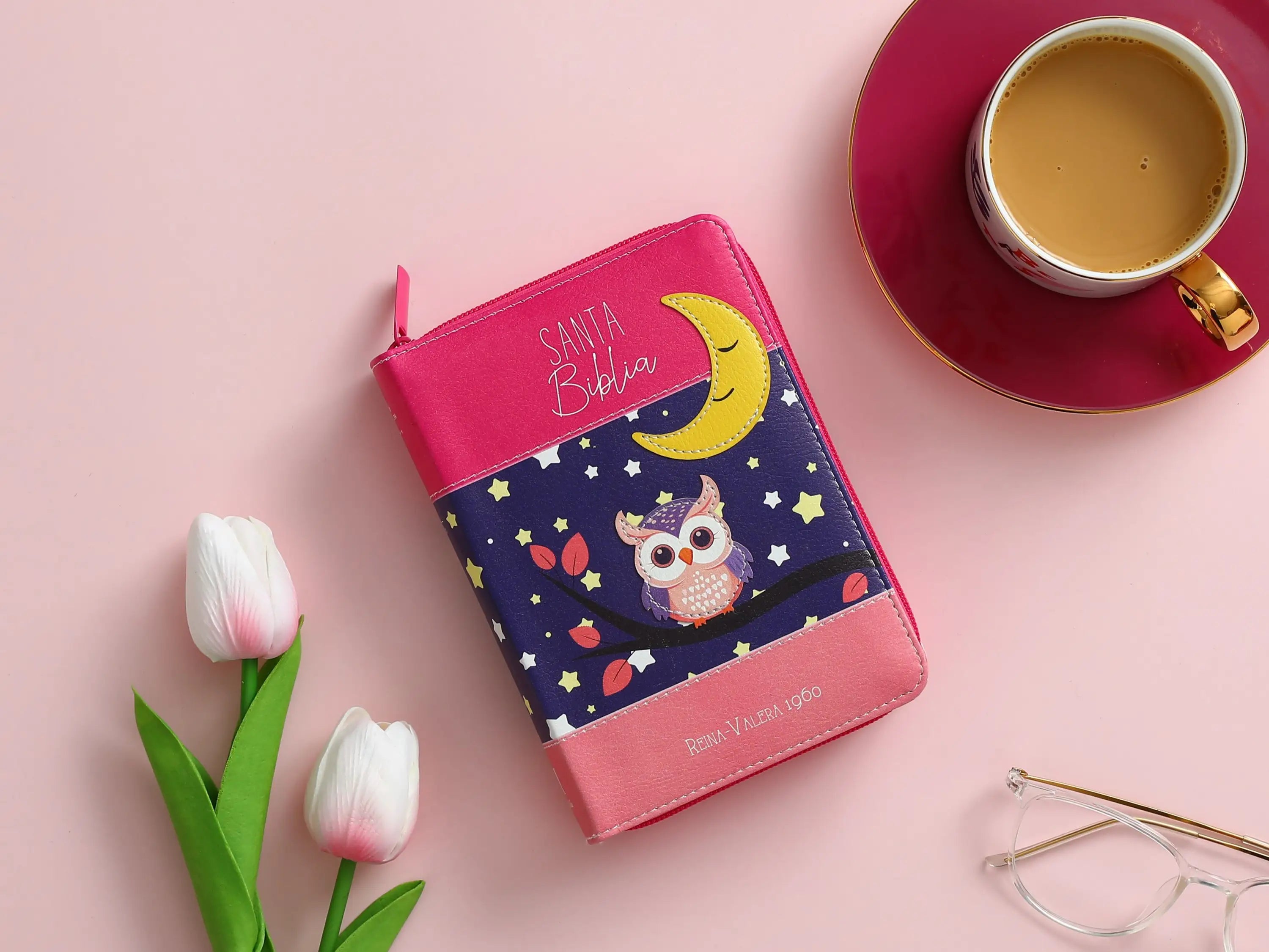 Biblia RVR60 025 cz PJR Primor Fucsia/lila/ rosa Luna - Búho Tamaño Bolsillo